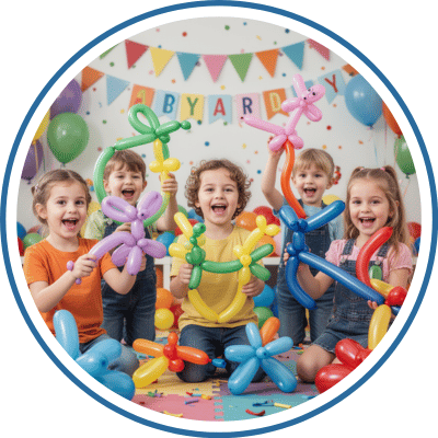 Professional balloon artists create colourful animals, Crowns flowers, and custom designs that keep kids entertained and smiling throughout the event.